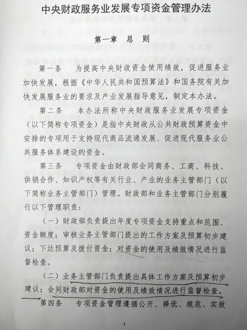 《中央财政服务业发展专项资金管理办法》